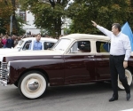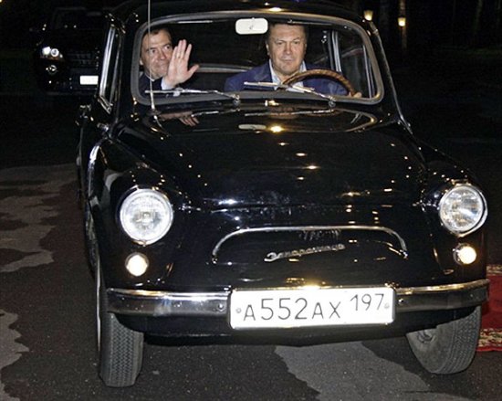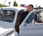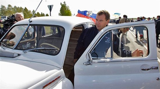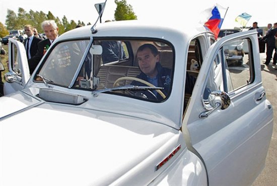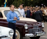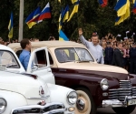 Президент РФ Дмитрий Медведев выбрал для автопробега белую «Победу», которая принадлежит ему, а Виктор Янукович сел за руль «Победы» цвета «рыжий металлик». Президенты на двух»Победа» торжественно преодолели 60 км от поселка Хомутовка (Брянская область) до Глухова (Сумская область).