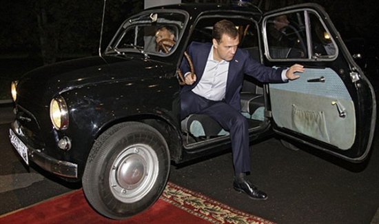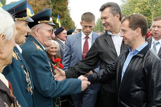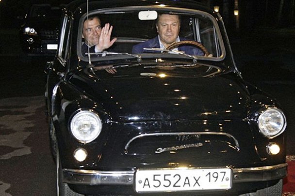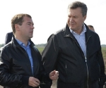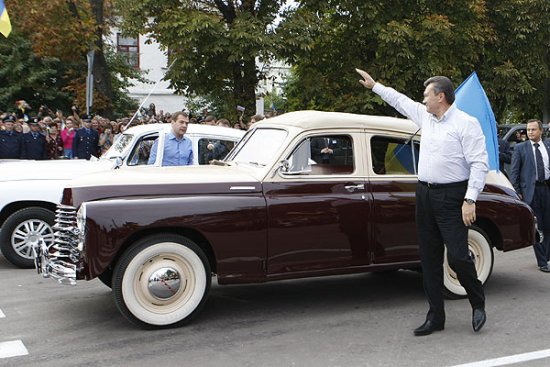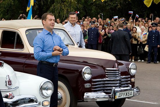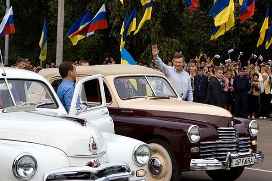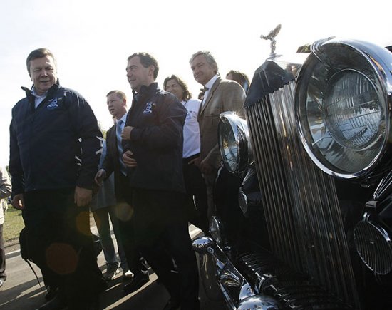 Президенты Украины и России Виктор Янукович и Дмитрий Медведев приняли участие вмеждународном автопробеге, который проходит по маршруту Санкт-Петербург-Москва-Киев, посвященном 100-летию первого автопробега «Санкт-Петербург-Москва-Киев».