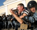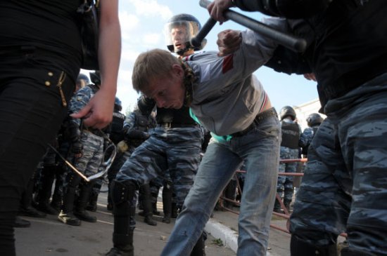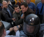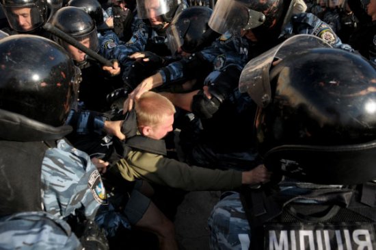 В Умани милиция жестоко разогнала митинг ВО «Свободы», ранее запрещенный судом, более 50 активистов были задержаны.