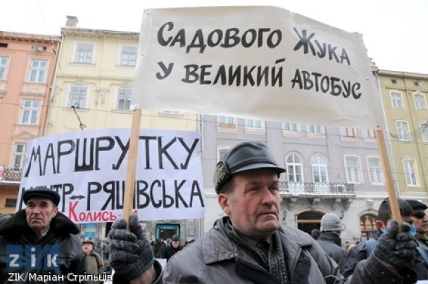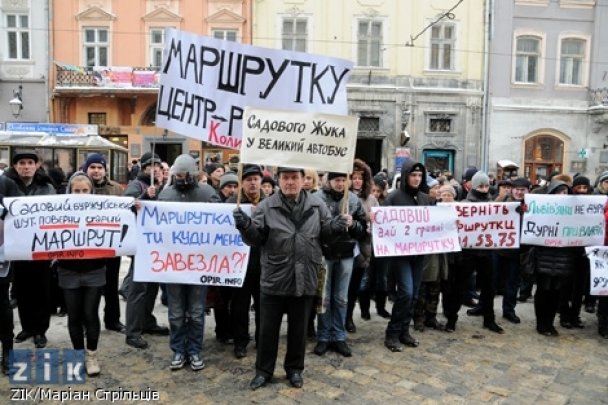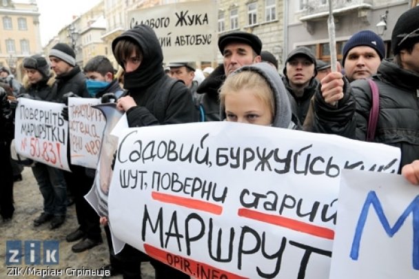 Участники народного вече потребовали полностью ликвидировать новую систему, поскольку она не работает. Пикетчики принесли с собой плакаты «Спасибо мэру Садовому за то, что пешком иду домой!», «Какой больной разум придумал ехать с Черновола на Зеленую через Привокзальную», «Садовый, сам покатайся новым маршрутам».