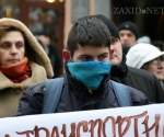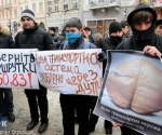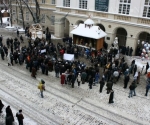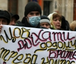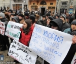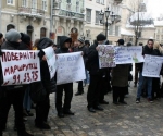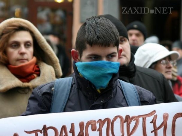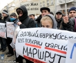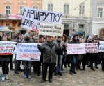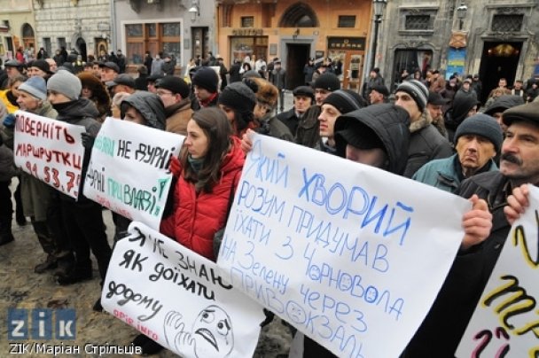 Более сотни человек приняли участие в акции протеста перед Львовским горсоветом против новой транспортной схемы во Львове.
