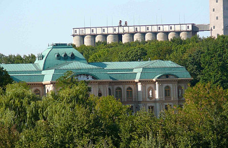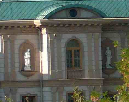 Как и в знаменитом Версале, перед хоромами Ахметова играет на солнце система фонтанов. В зеленой крышей дворца олигарха разместились скульптуры.