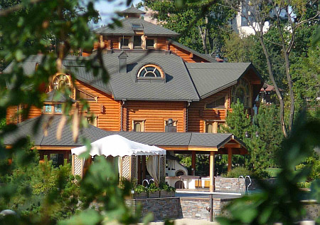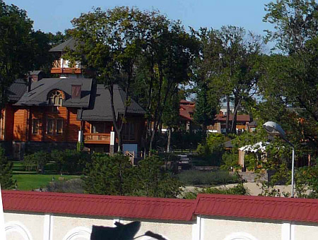 На территории поместья Ахметова выкопали озеро, а на его берегу построили несколько коттеджей, домик рыбака, бассейн и другие сооружения.