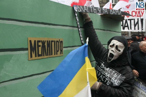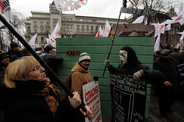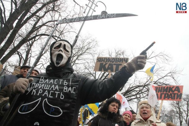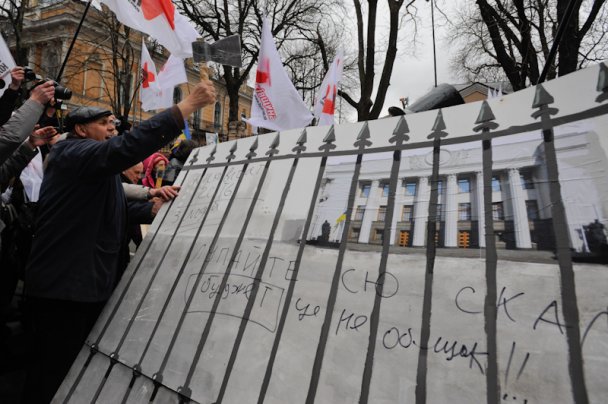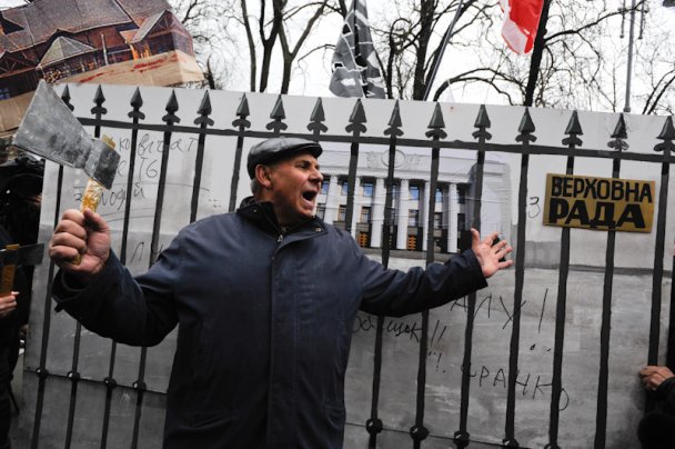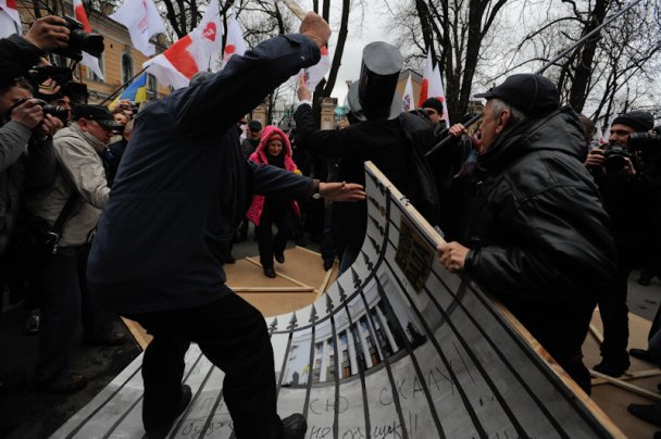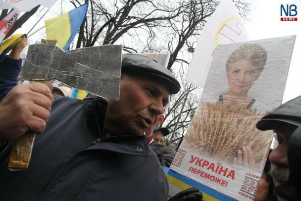 БЮТовцы пришли на Банковую с топорами и привели смерть с косой
