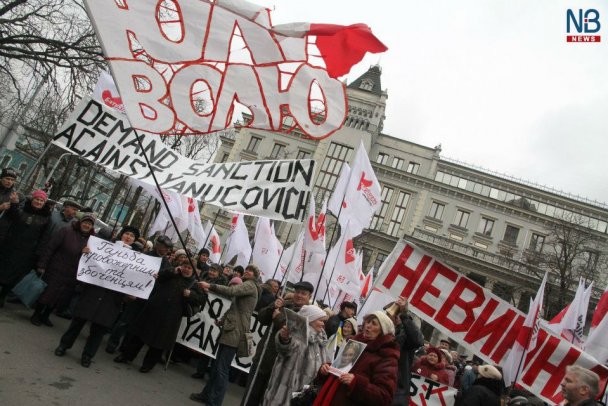 Участники акции устроили театрализованное действо «изгнания Януковича», а после спектакля випустилиу небо голубей, как символ освобождения Украины и Юлии Тимошенко. В акции также принимали участие народные депутаты фракции «БЮТ-Батькивщина».