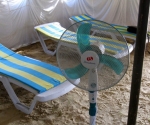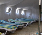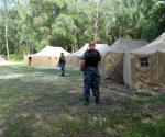 У кемпінгу для вболівальників Євро-2012, який облаштовують на території Алексіївського лугопарку в Харкові, гостям приготували пляжні тапчани і військові намети.