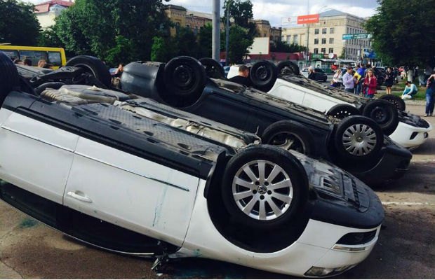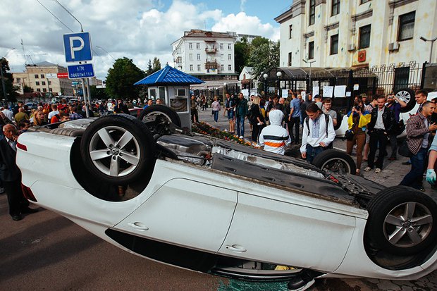 Флаг был снят с помощью спиннинга, то есть митингующие не пересекали забор, ограждающий российское диппредставительство, территория которого в соответствии с международным законодательством является территорией только Украины.