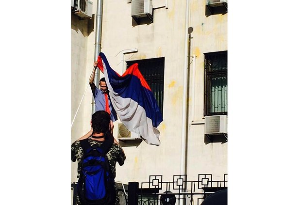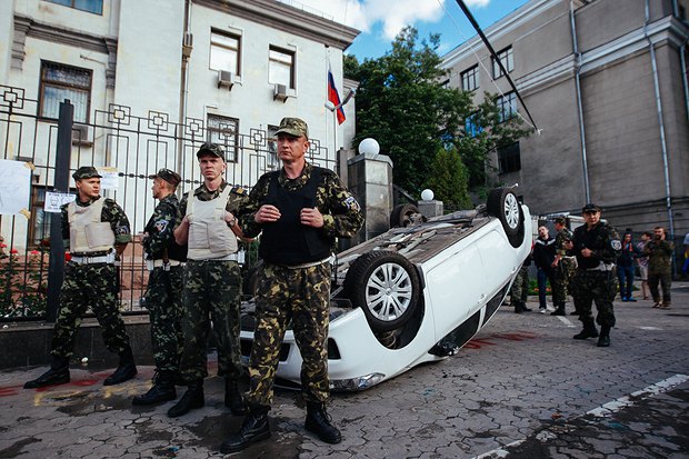 В Киеве митингующие сняли российский флаг с флагштока на территории посольства Российской Федерации в Украине и намерены направить его украинским сводным силам, которые принимают участие в антитеррористической операции на Донбассе, для того, чтобы они сами приняли решение, что с ним делать.