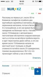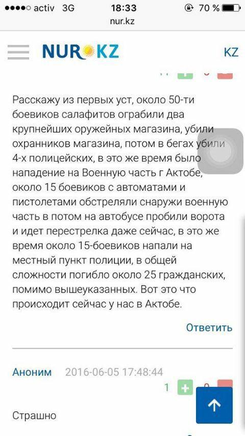 Официально в МВД Казахстана сообщают, что в 15.45 по Астане (12:45 по Киеву) в Актобе напали на оружейный магазин, через час — на еще один и на воинскую часть Нацгвардии.
