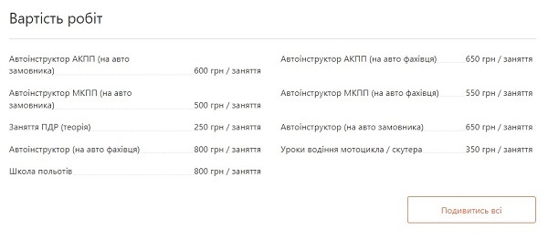 Также можно поискать частных инструкторов по вождению. Вот, какие расценки для Киева предлагает сайт Kabanchik:
